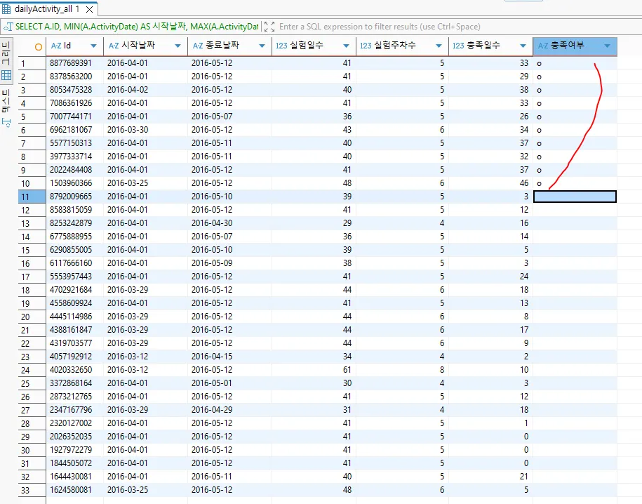 착용하지 않은 날짜가 있는 데이터끼리 모아서 분석