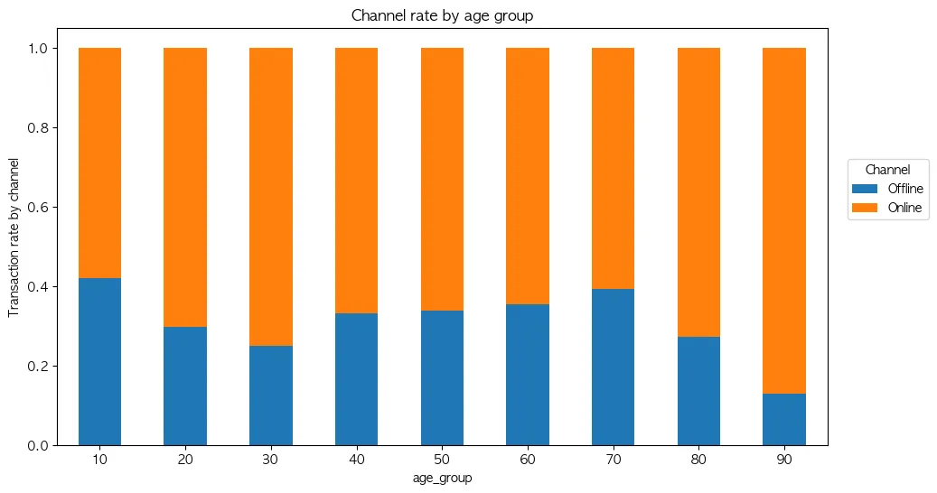 age_group_channel['sales_ratio'] = age_group_channel['transaction_cnt'] / age_group_channel.groupby('age_group')['transaction_cnt'].transform('sum')
