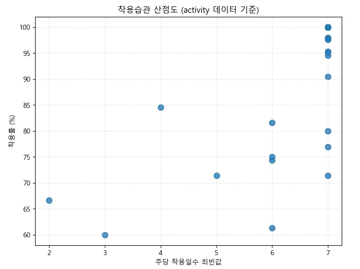 여성 직장인 대상 ← 그룹 별로 앉은 시간 차이는 거의 없더라