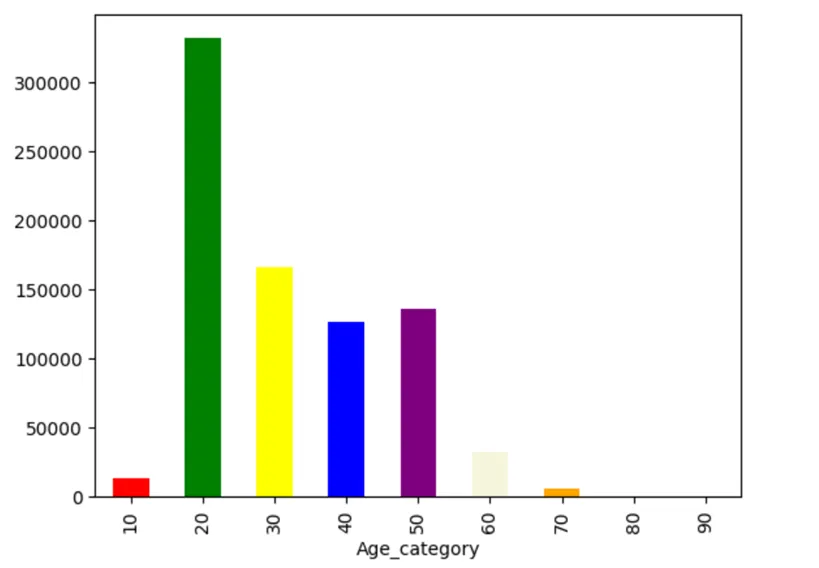 주된 고객층은 20-50대이지만 평균 구매가는 60-80대가 가장 높음을 알 수 있음