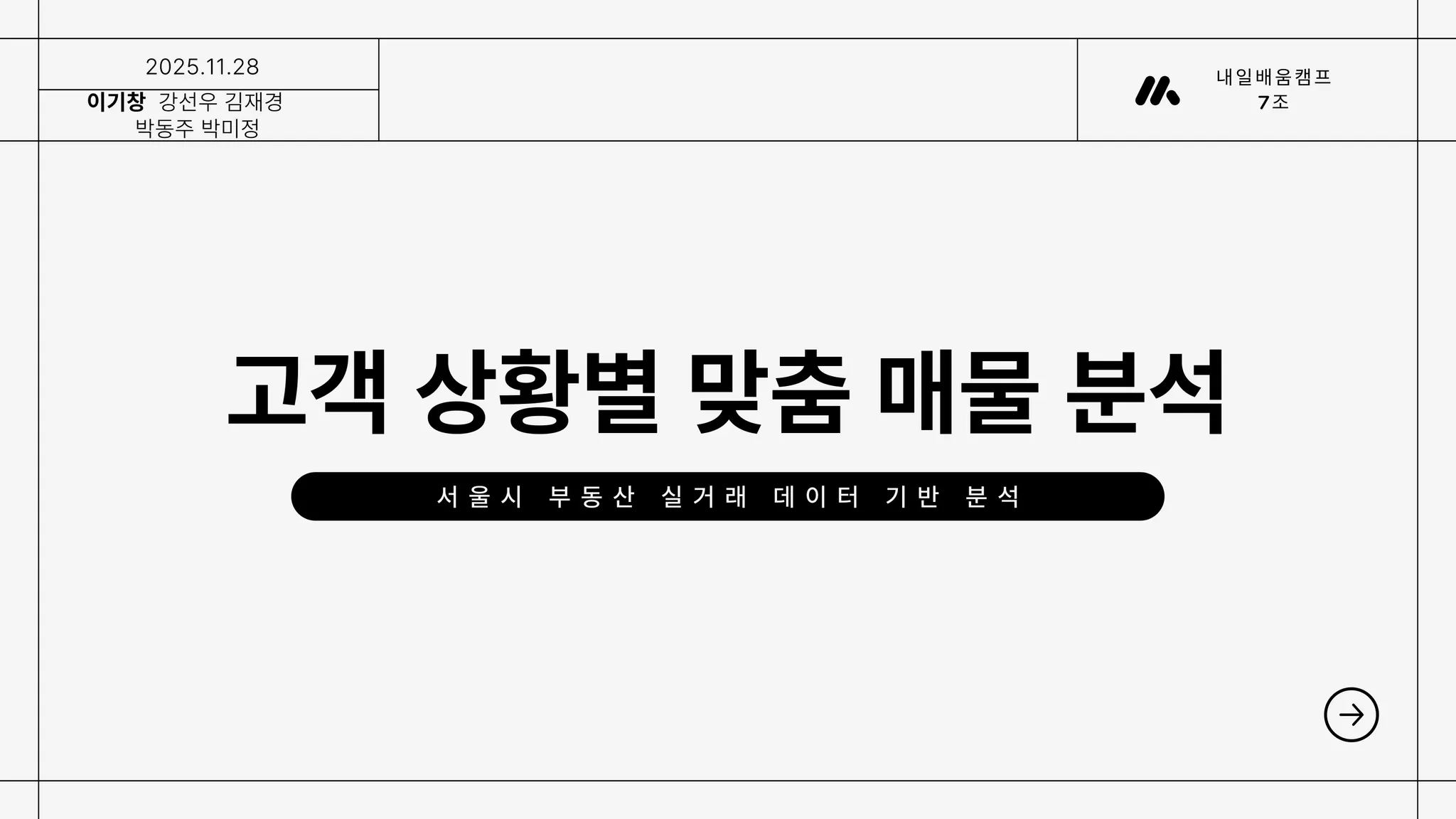 강선우 : 부동산 데이터가 익숙하지 않아 초반에는 분석 방향 설정에 어려움이 있었지만, 팀원들과 논의하며 데이터 분석 흐름을 조금씩 잡아갈 수 있었다. 이번 프로젝트를 통해 데이터 분석은 코딩도 중요하지만 도메인 이해와 인사이트 도출이 최종 목표임을 체감할 수 있었던 것 같다.
