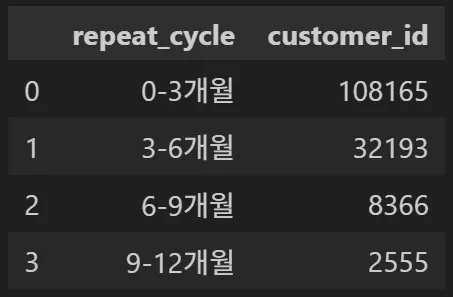 고객의 평균적인 재구매 주기 → 재구매 주기 섹션 나누기