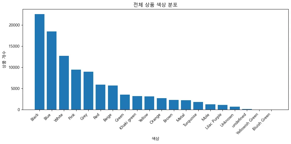 색상·상품군 인기도 단순 매출 상위 ≠ “트렌드 선도”. 상품 공급량, 재고 정책, 프로모션 영향이 있을 수 있으니 해석할 때 보수적으로 접근하세요.