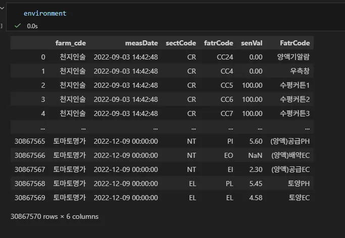 # 환경정보 environment_df에서 양액정보와 토양정보를 필터링한 테이블