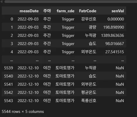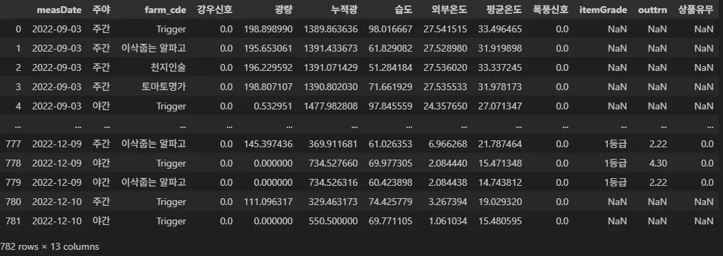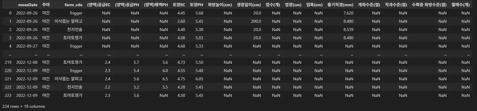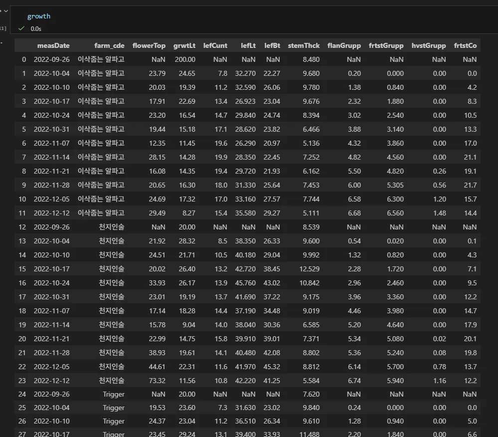 growth_cols3 = ['measDate','주야','farm_cde','화방높이(cm)','생장길이(cm)','엽수(개)','엽장(cm)','엽폭(cm)','줄기직경(mm)','개화수준(점)','착과수준(점)','수확중 화방수준(점)','열매수(개)']