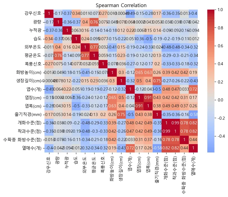 corr = env_grow_pivot1.select_dtypes(include='number').corr(method='spearman')