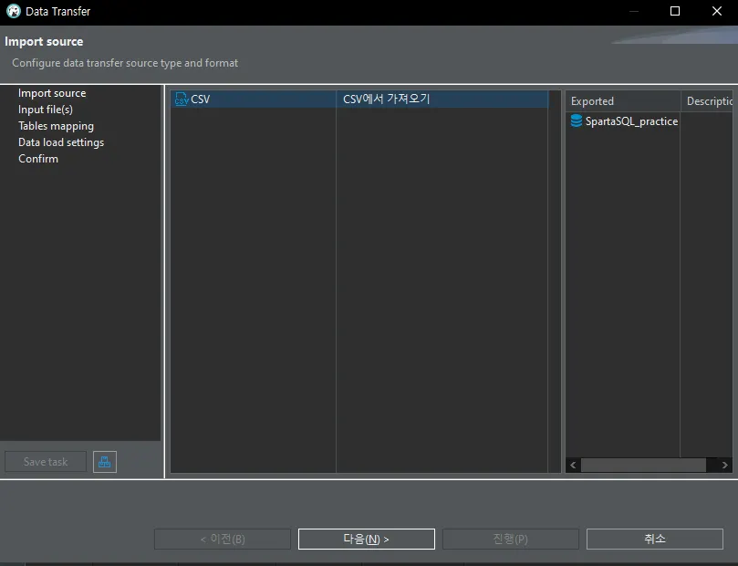 여기서부터는 파일 열기→ 다음 → 다음 → 진행!