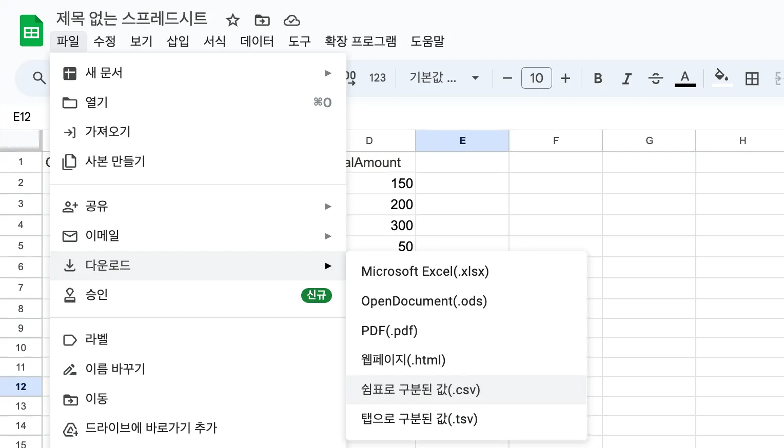 이 시트를 다운로드 합니다. 파일 형식은 CSV