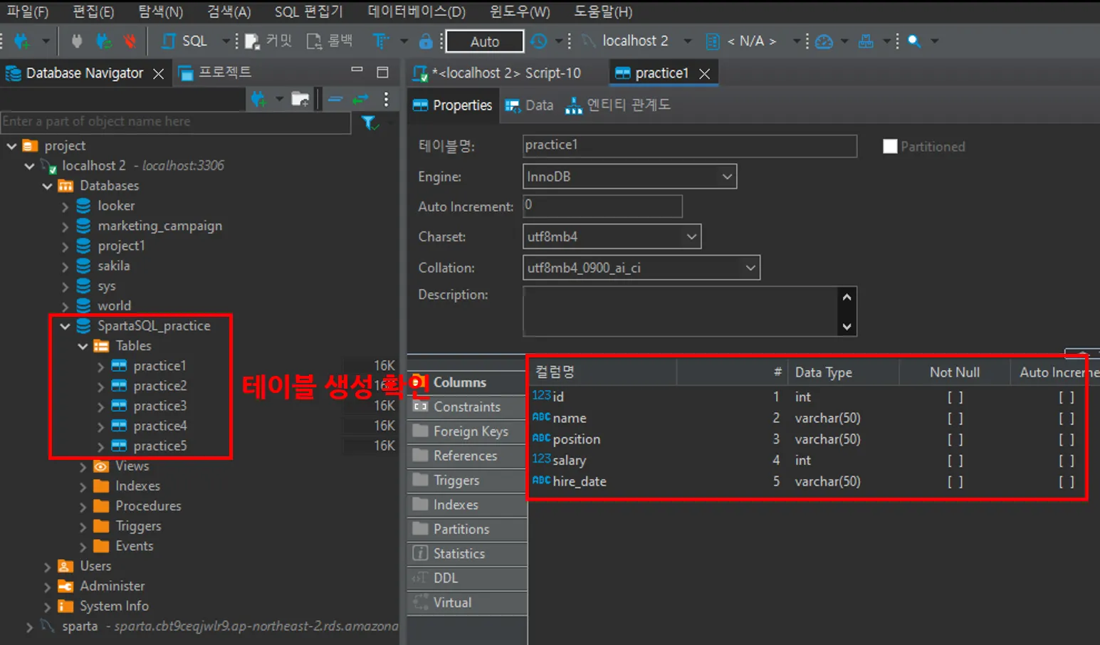 좌측처럼 테이블이 생성되었으면 성공입니다.