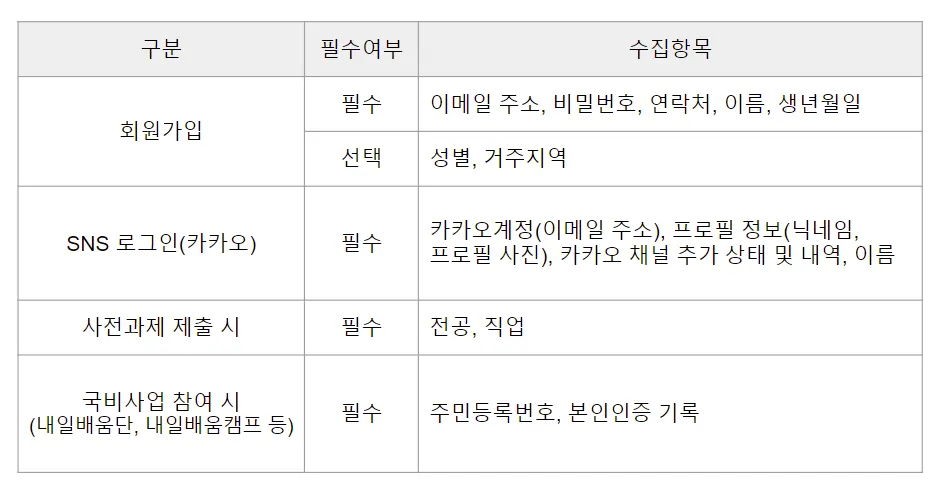 제1조 (수집하는 개인정보 항목 및 수집방법)